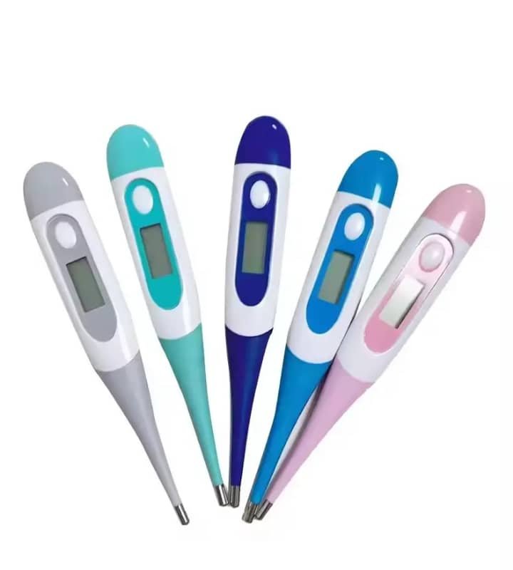 - Capteur CTN : Dans les modèles avec sonde (oraux, axillaires, rectaux), la thermistance est située à l’extrémité de la sonde métallique. Sa résistance électrique diminue de manière prévisible et uniforme lorsque la température corporelle ou ambiante augmente. L’appareil mesure cette variation de résistance et un circuit électronique interne la convertit en une valeur de température correspond au signal électrique, qui est ensuite affichée.